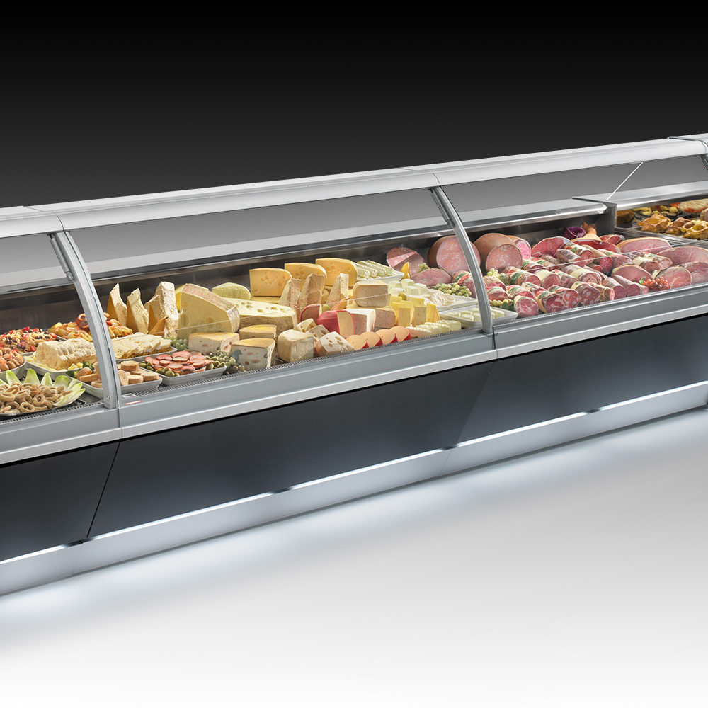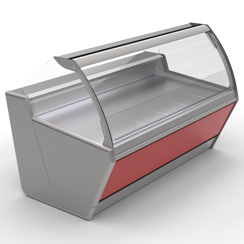 Společnost Oscartielle tuto vitrínu v moderním klíči oživila zakřiveným sklem, které vytváří ultramoderní vzhled se střídajícími se zakřivenými a rovnými plochami plynule spojenými dohromady. Absence zadních podpěr usnadňuje obsluze přístup k výstavní ploše.