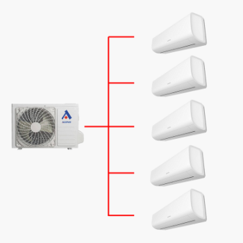 Tepelná čerpadla vzduch-vzduch nabízejí řadu možností: buď připojíte jednu vnitřní jednotku k jedné venkovní jednotce, nebo použijete Multi-split systém a připojíte až pět vnitřních jednotek k jedné venkovní jednotce. Multi-split systém umožňuje efektivně chladit nebo vytápět až pět různých místností na různé teploty.